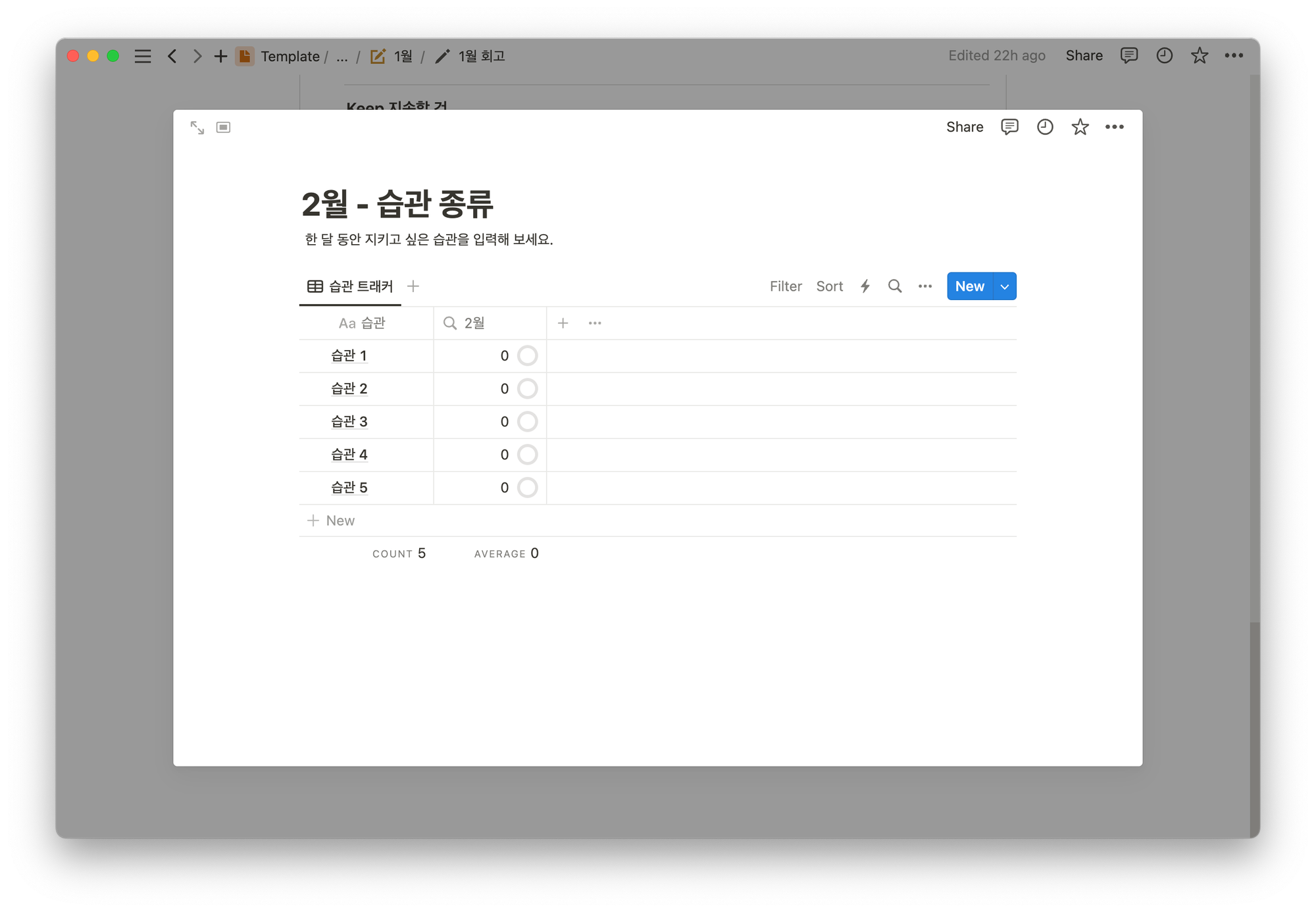 - ์ต๊ด: ํ ๋ฌ ๋์ ์งํค๊ณ ์ถ์ ์ต๊ด์ ๋จผ์ ์ ํ๊ณ , ๋งค์ผ ์ด๋ค ์ต๊ด๋ค์ ์คํํ๋์ง ๊ฐ๋จํ ๊ธฐ๋กํ ์ ์์ต๋๋ค.